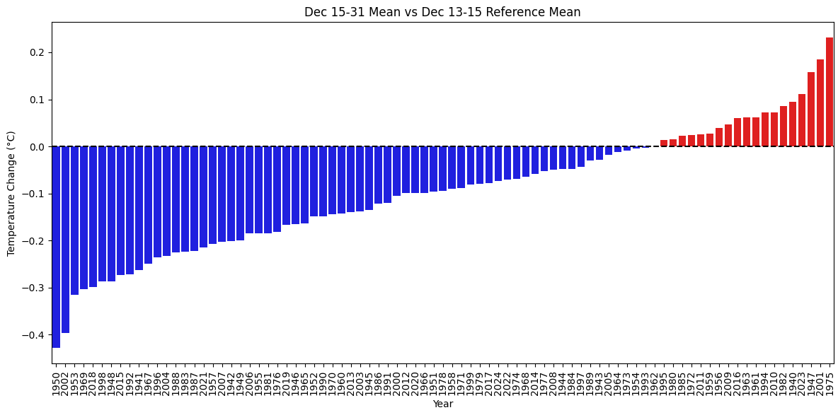 i.e. binning the climatology you get the following trend relative to some mid point in December (obviously not the best method)