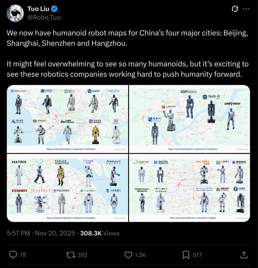 Other reference points for manufacture of 1M humanoid robots: